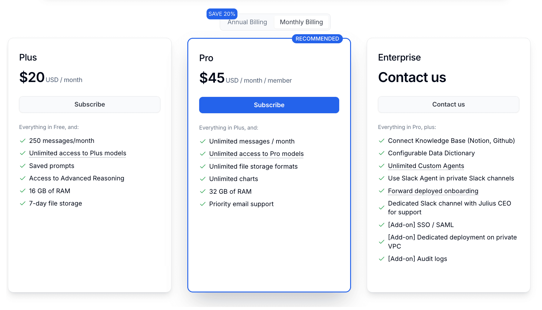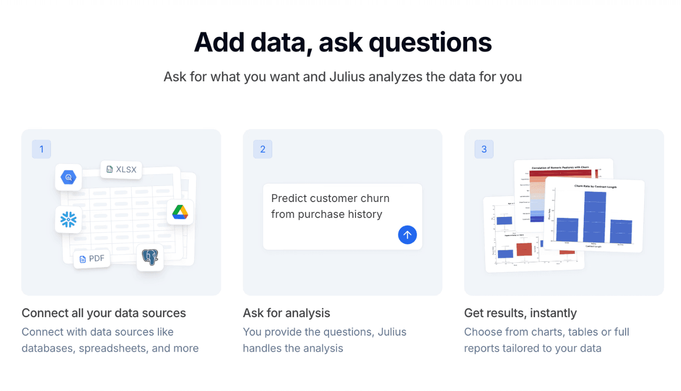 • Choose Julius AI if you need to inspect raw Python code for statistical modeling.