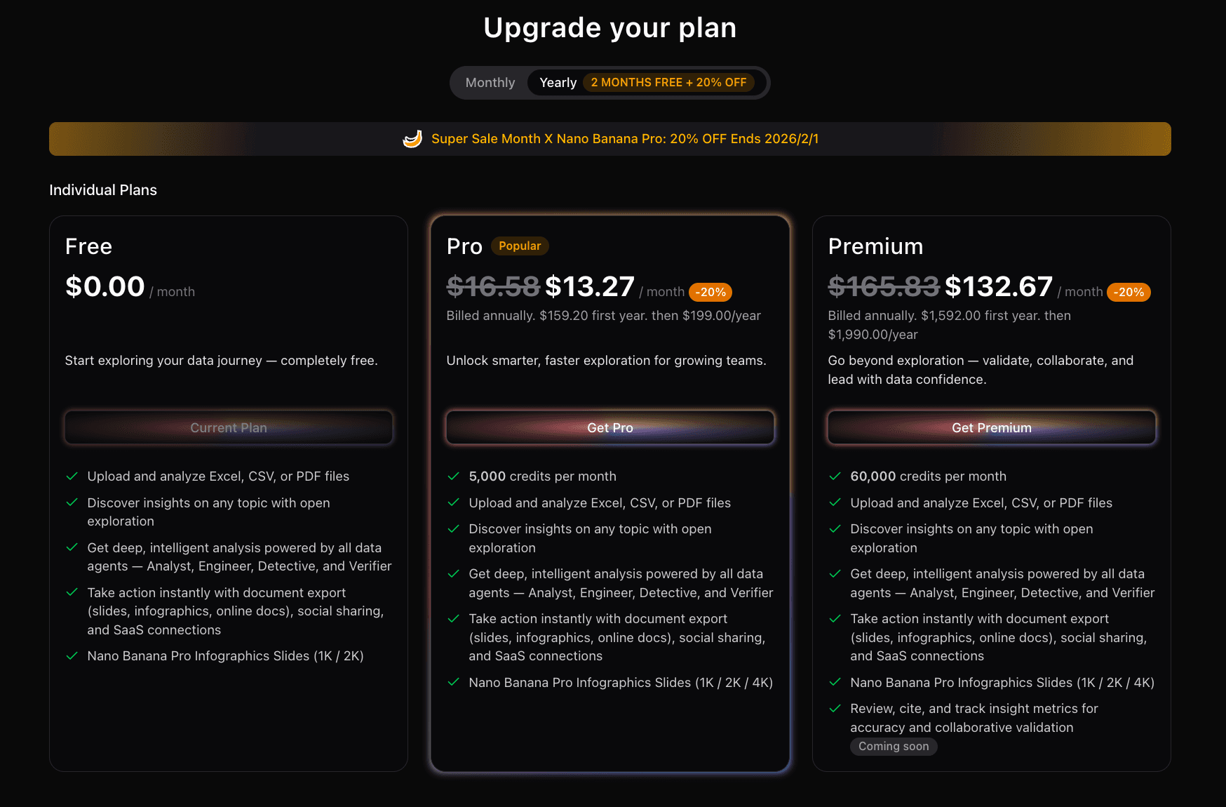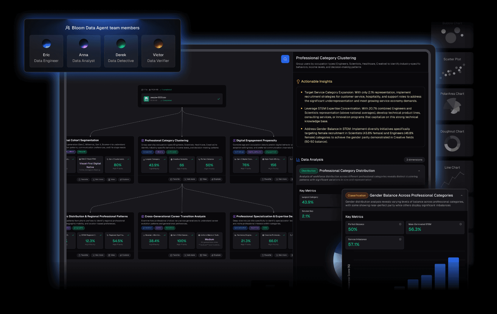 • Nano Banana Pro (The Ultimate Advantage): This is the game-changer. Unlike competitors, Bloom can instantly convert your analysis results and charts into Professional/Business Slides and Data Preview Images. It bridges the gap between Excel data and the boardroom screen effortlessly.