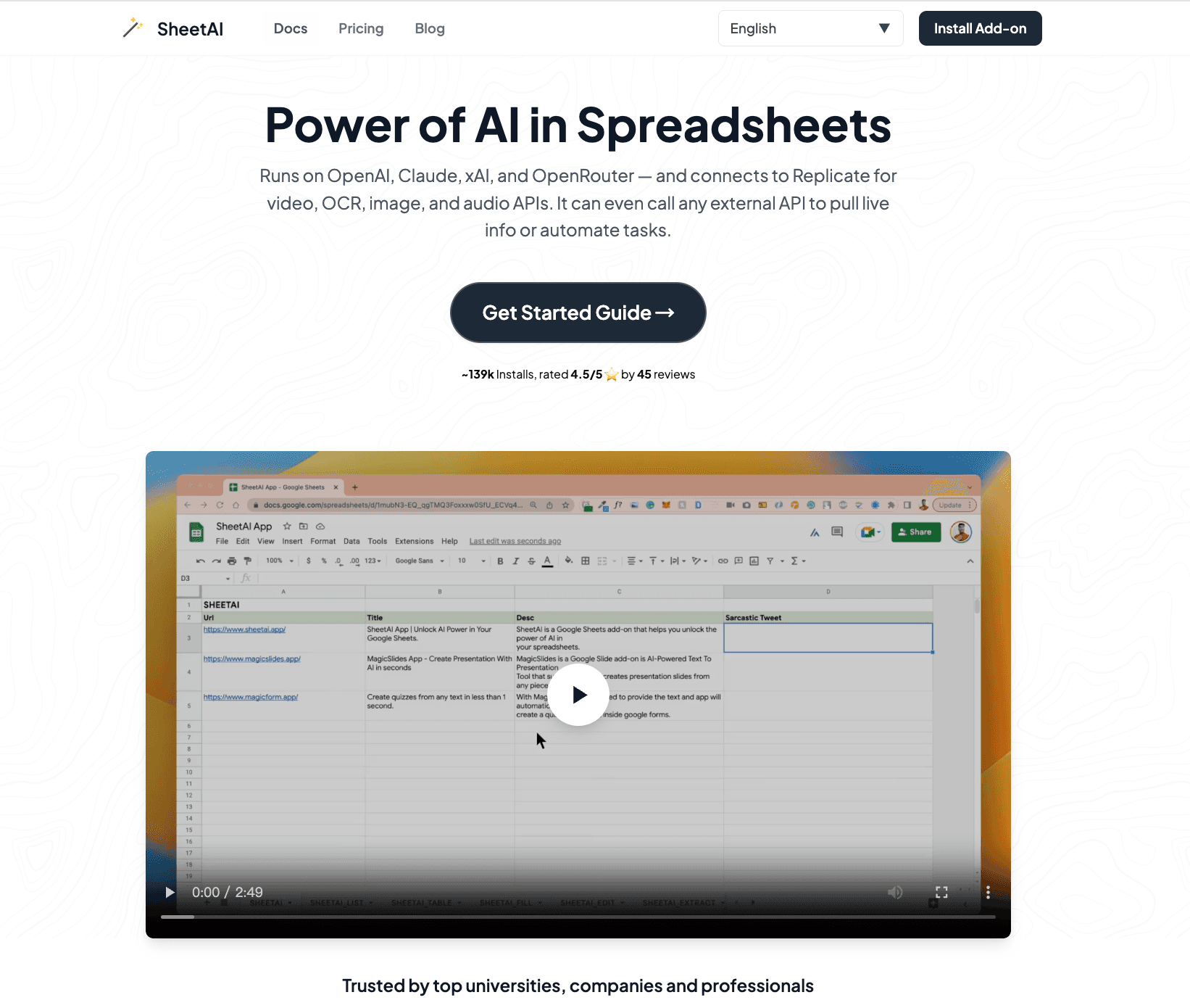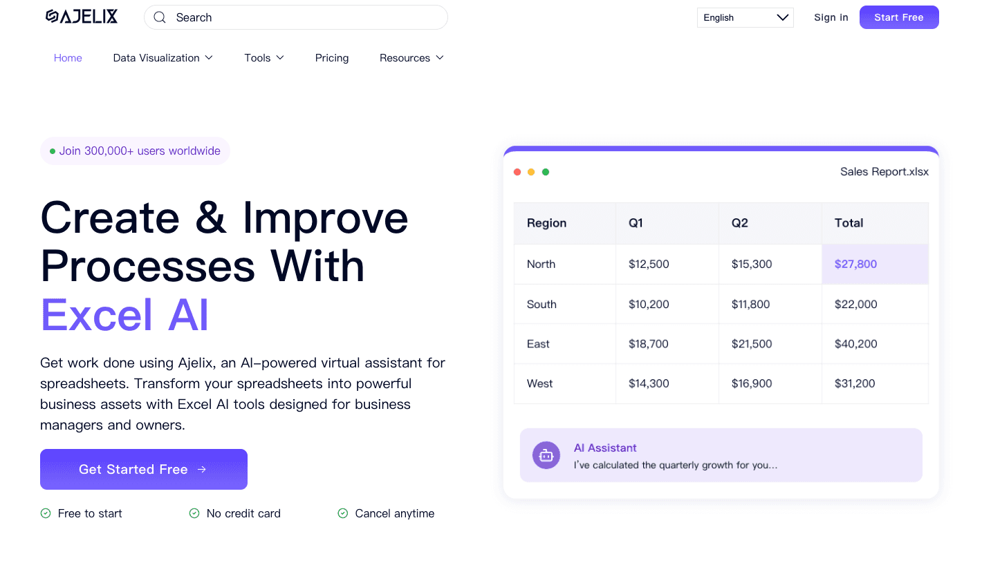 A tool that embeds AI directly into your spreadsheets to automate data tasks and basic visualization prep.