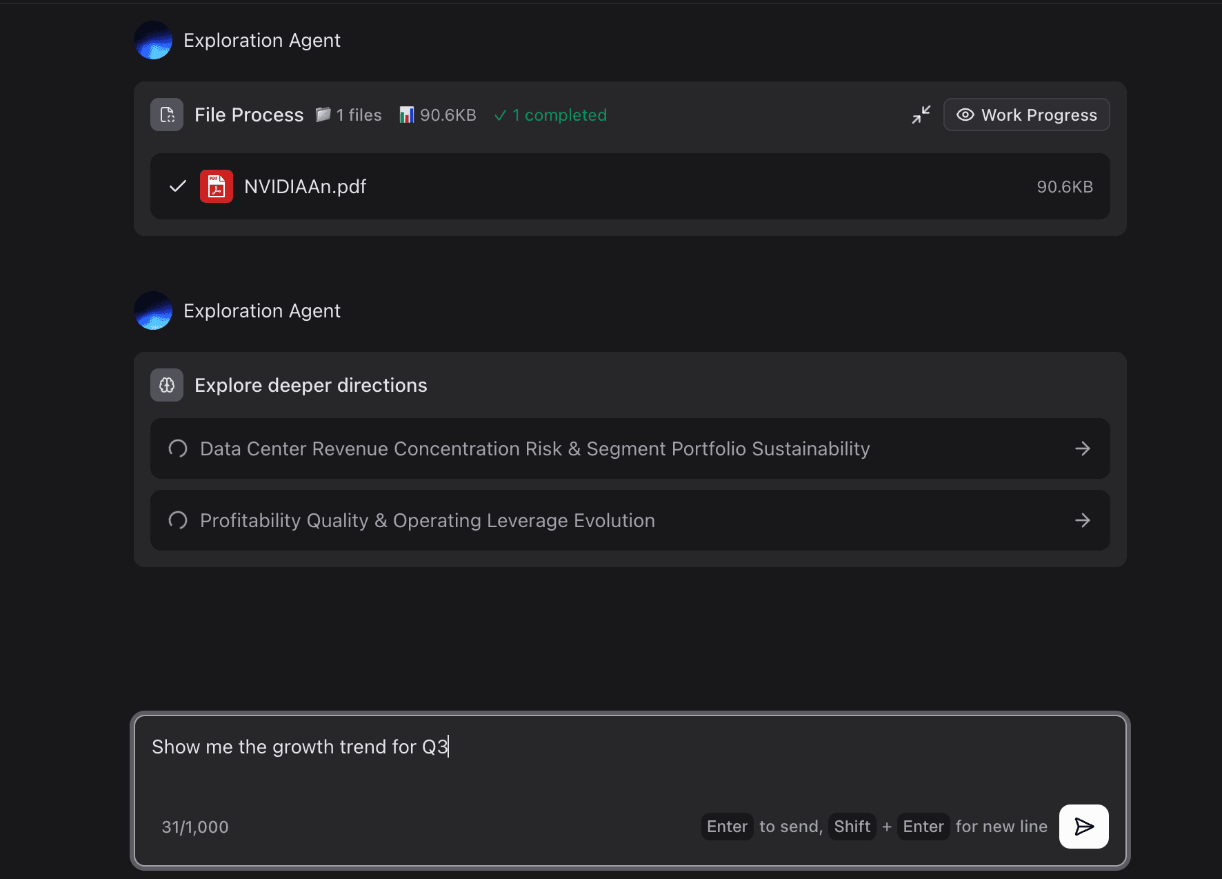 The Action: Talk to your data as if you were messaging a colleague. Ask, "Summarize the key financial risks in this report," or "Show me the growth trend for Q3."