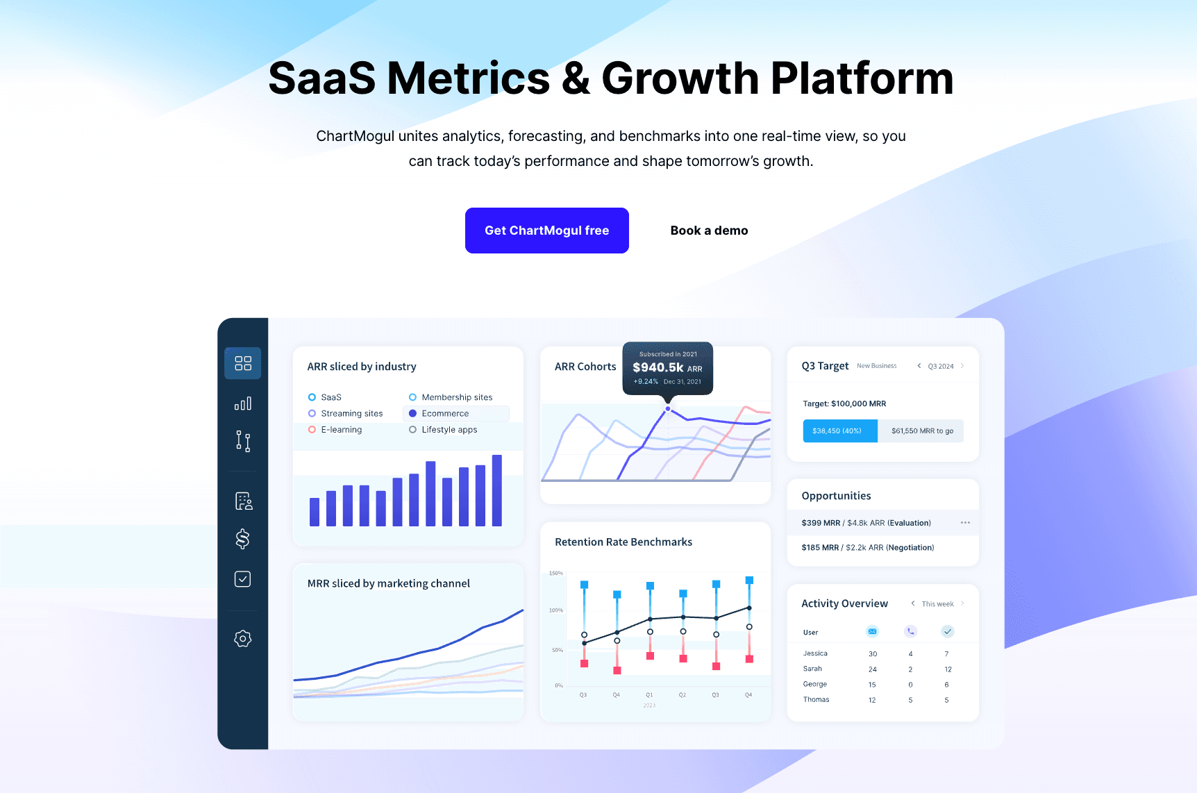 SaaS分析ツールは、サブスクリプションベースのビジネスのパフォーマンスを追跡、測定、分析するために設計されたソフトウェアプラットフォームです。ユーザー行動、チューニング率、MRR(マンスリーリカーリングレベニュー)、顧客保持などの重要な指標を監視します。