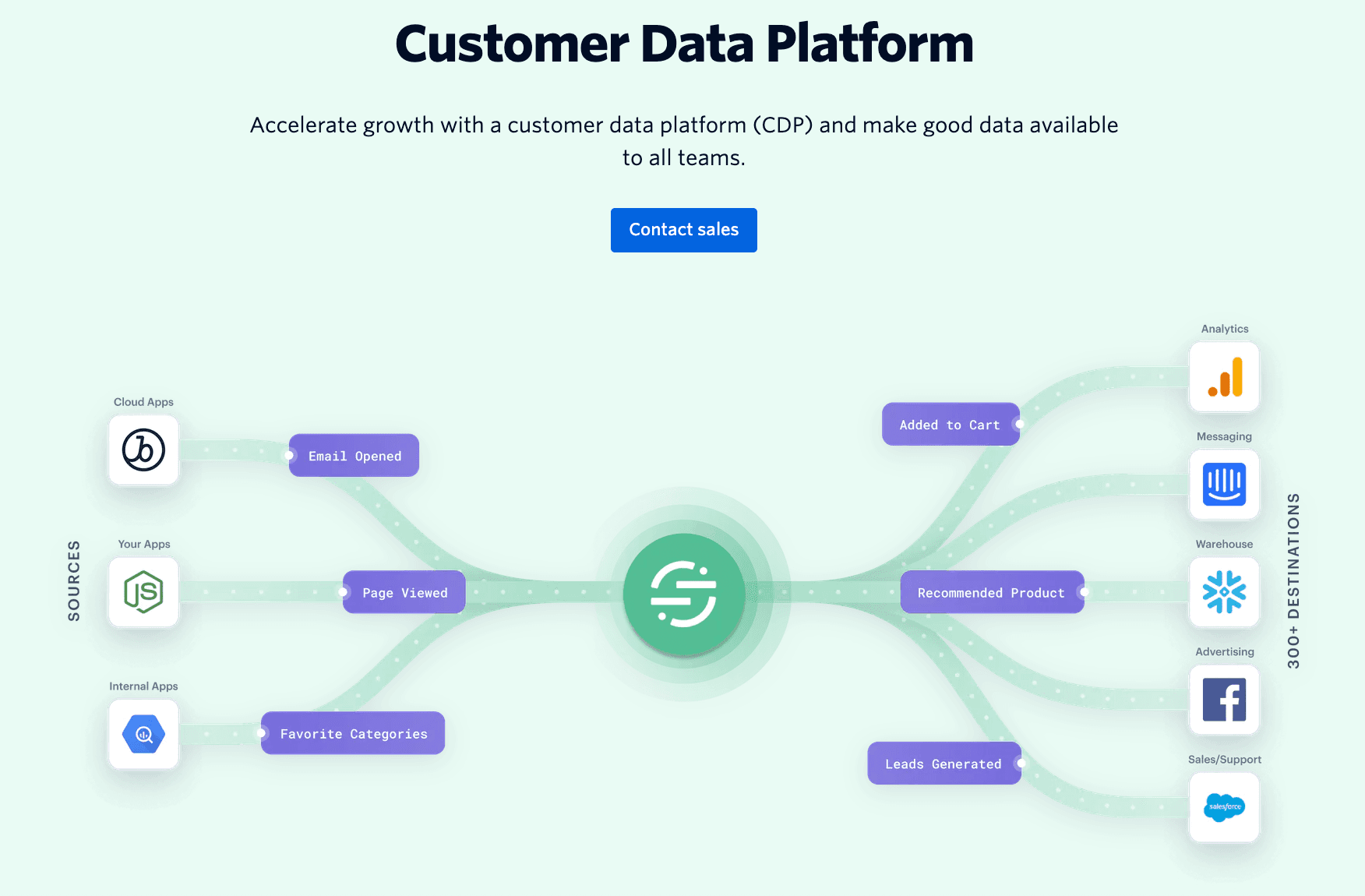 ユーザーデータを一度収集し、他の数百のツールに送信するカスタマーデータプラットフォーム(CDP)です。
