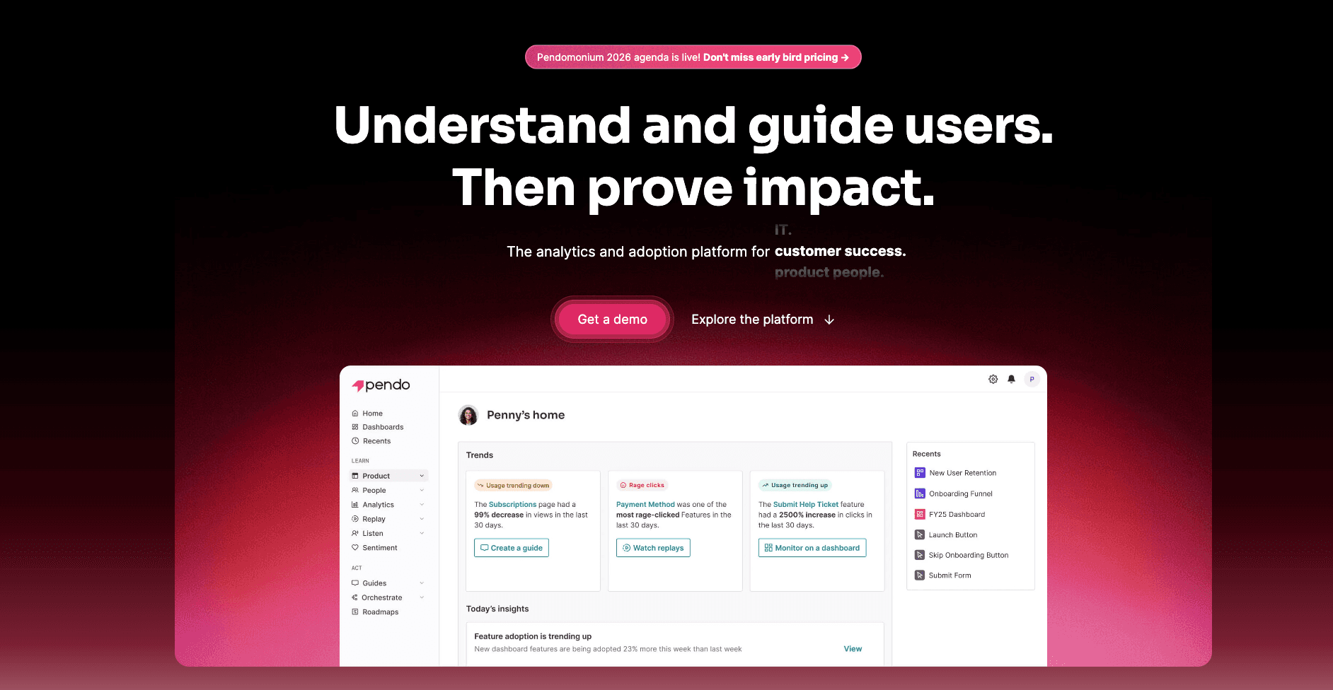 ユーザー採用を促進するために製品分析とアプリ内ガイダンスを組み合わせたプラットフォームです。