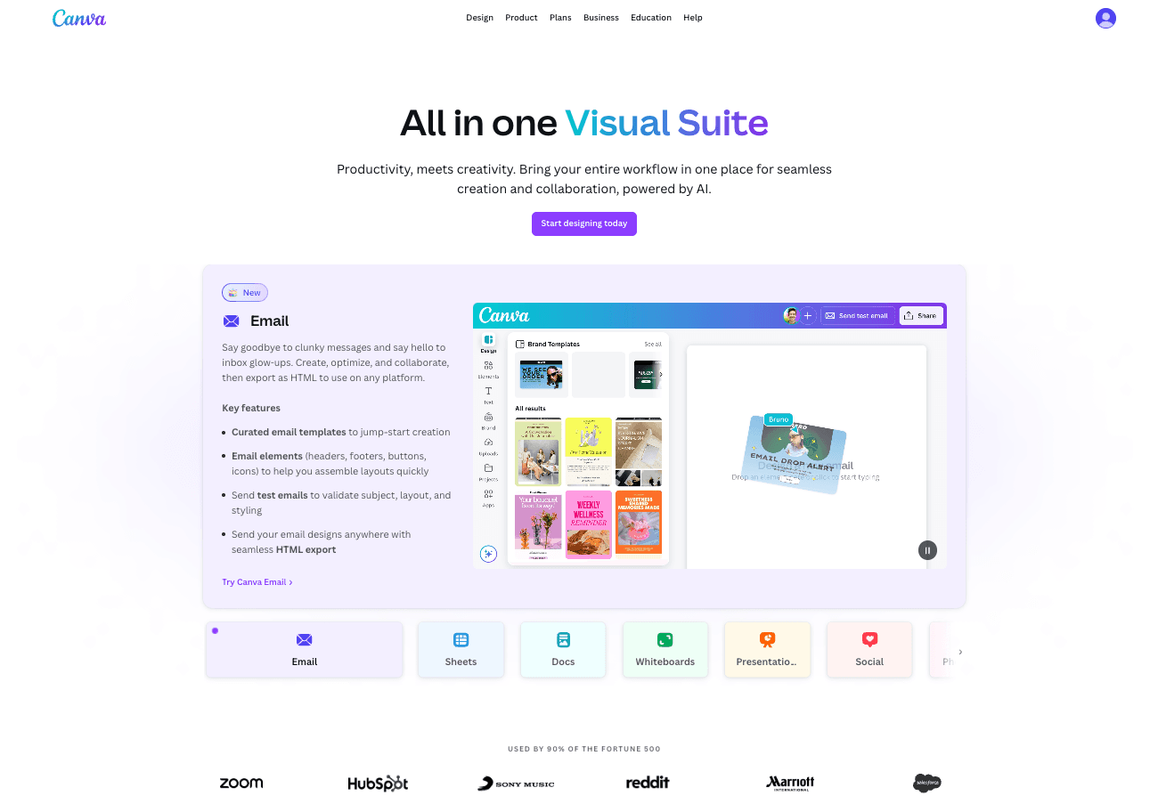 主な特徴:ドラッグアンドドロップインターフェース、大規模なテンプレートライブラリ、AIアシストによる色マッチング、ブランドキット統合。